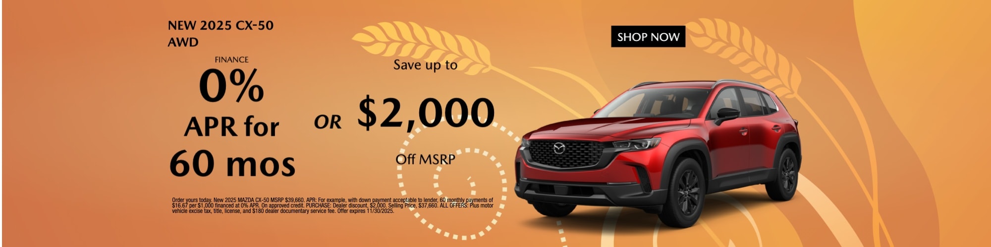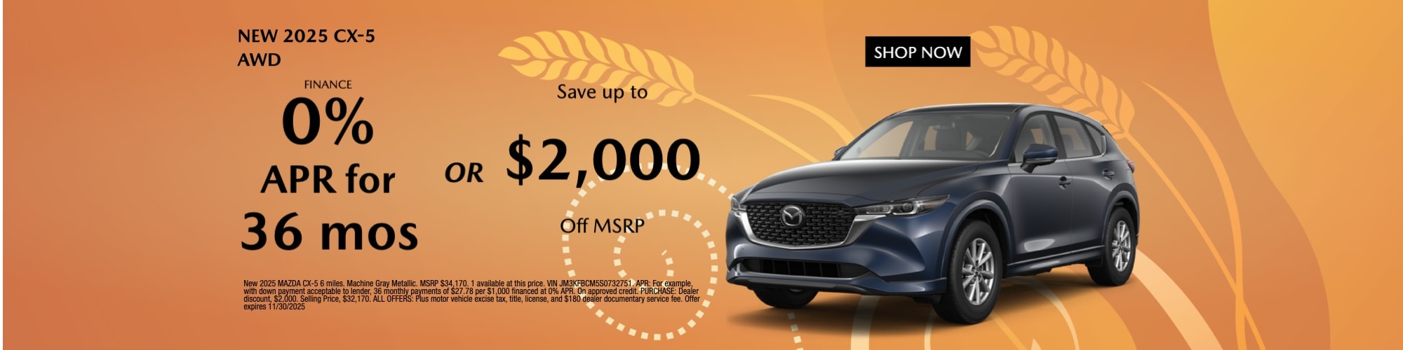 We provide exciting opportunities to save with our special offers. We provide savings with new Mazda specials, used specials, service specials, and parts specials. With these deals, you can save money on your next vehicle and keep service and repair costs to a minimum. We routinely update our offers to ensure there is always something new to consider. Be sure to contact us if you find a special that seems right for you, and keep in mind the expiration dates.